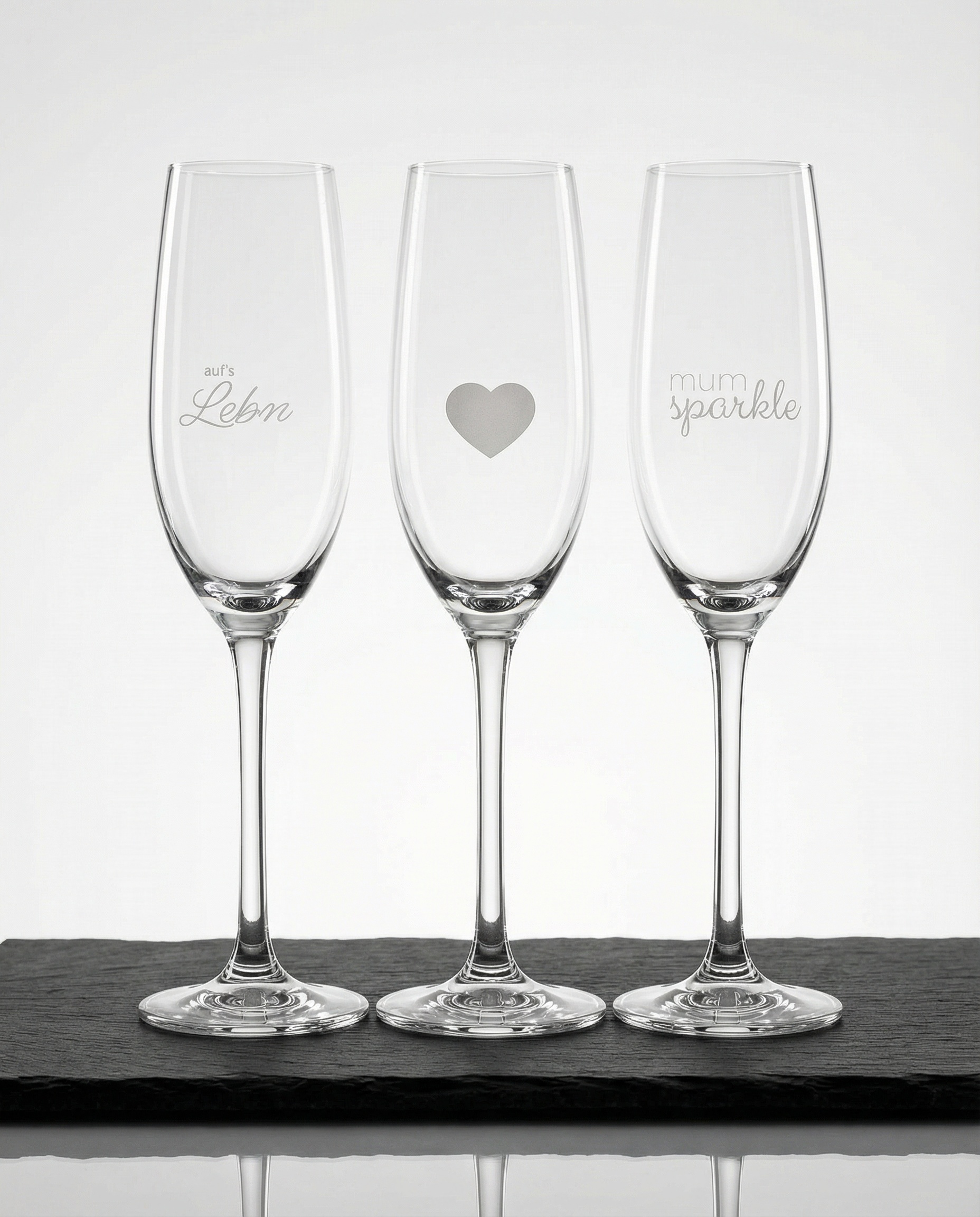 Das graviertes Sektglas sorgt mit liebevollen Sprüchen wie „Mum Sparkle“, „Aufs Lebn“, „Hauptsache es prickelt“ oder einem kleinen ❤ für extra gute Laune bei jedem Anstoßen.