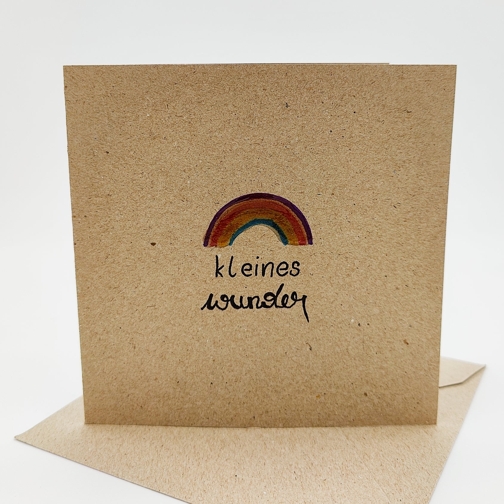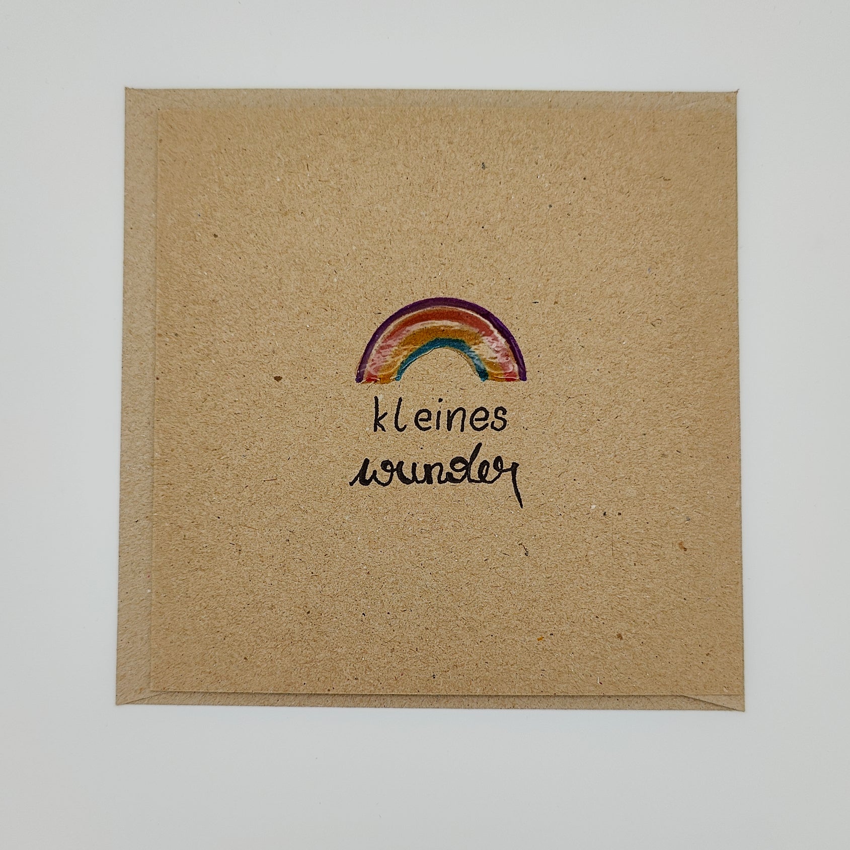 Das quadratische Format, der nachhaltige Kraftpapier-Look und das zarte Regenbogenmotiv machen sie zu etwas ganz Besonderem.