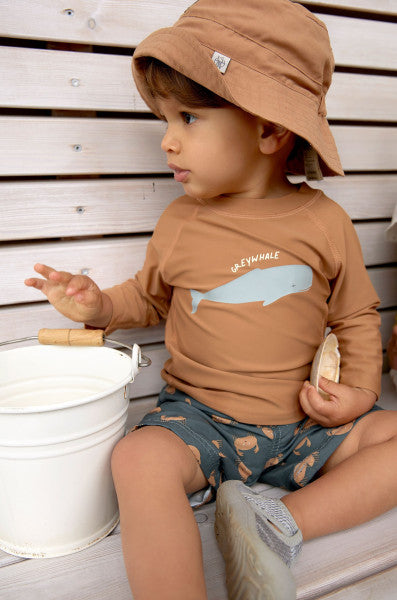 Die blaue UV Badehose für Kinder mit UV Schutz 80 sorgt dank der integrierten Schwimmwindel, des breiten Hosenbundes und der nahtlose Verarbeitung im Inneren für ein angenehmes Tragegefühl und Badespaß.