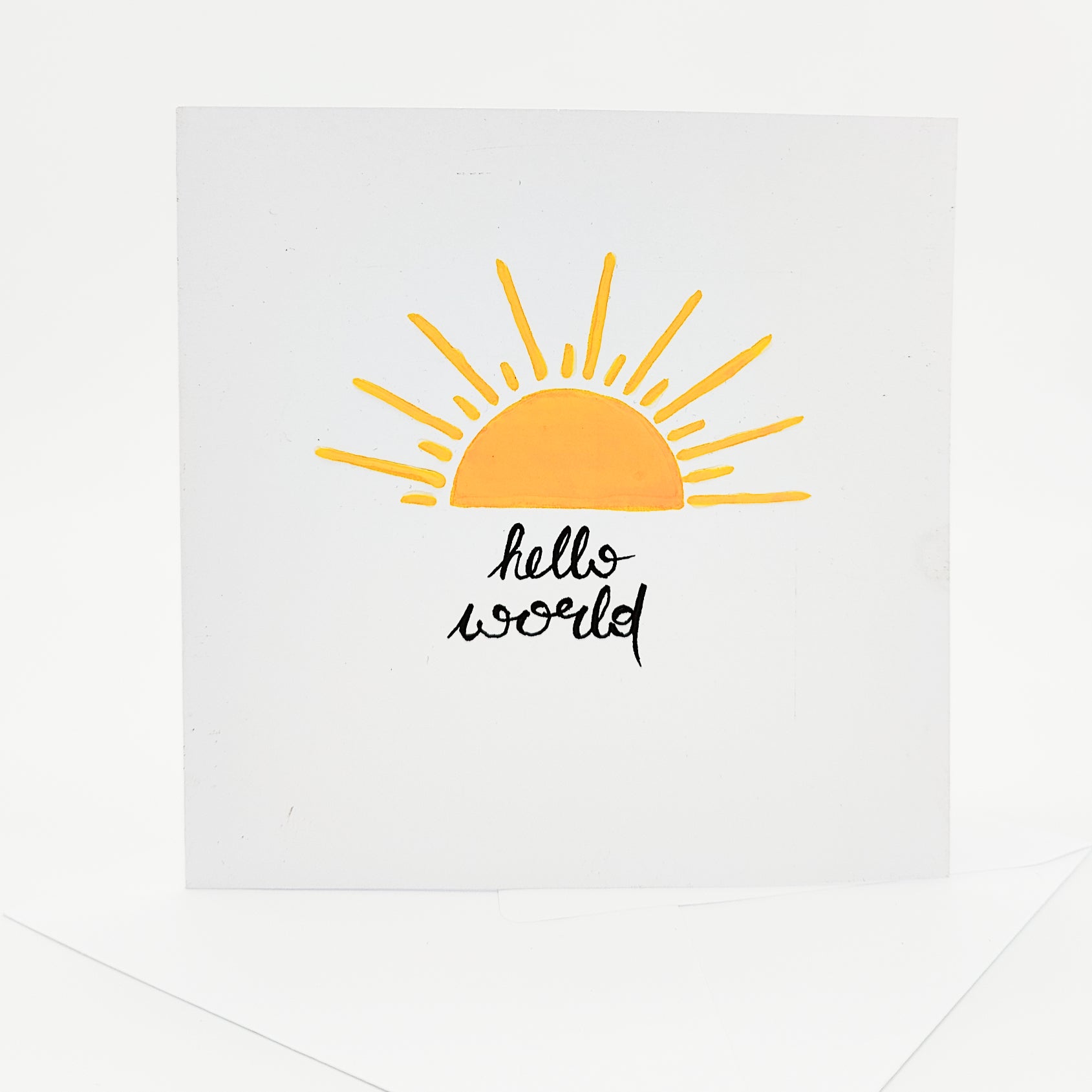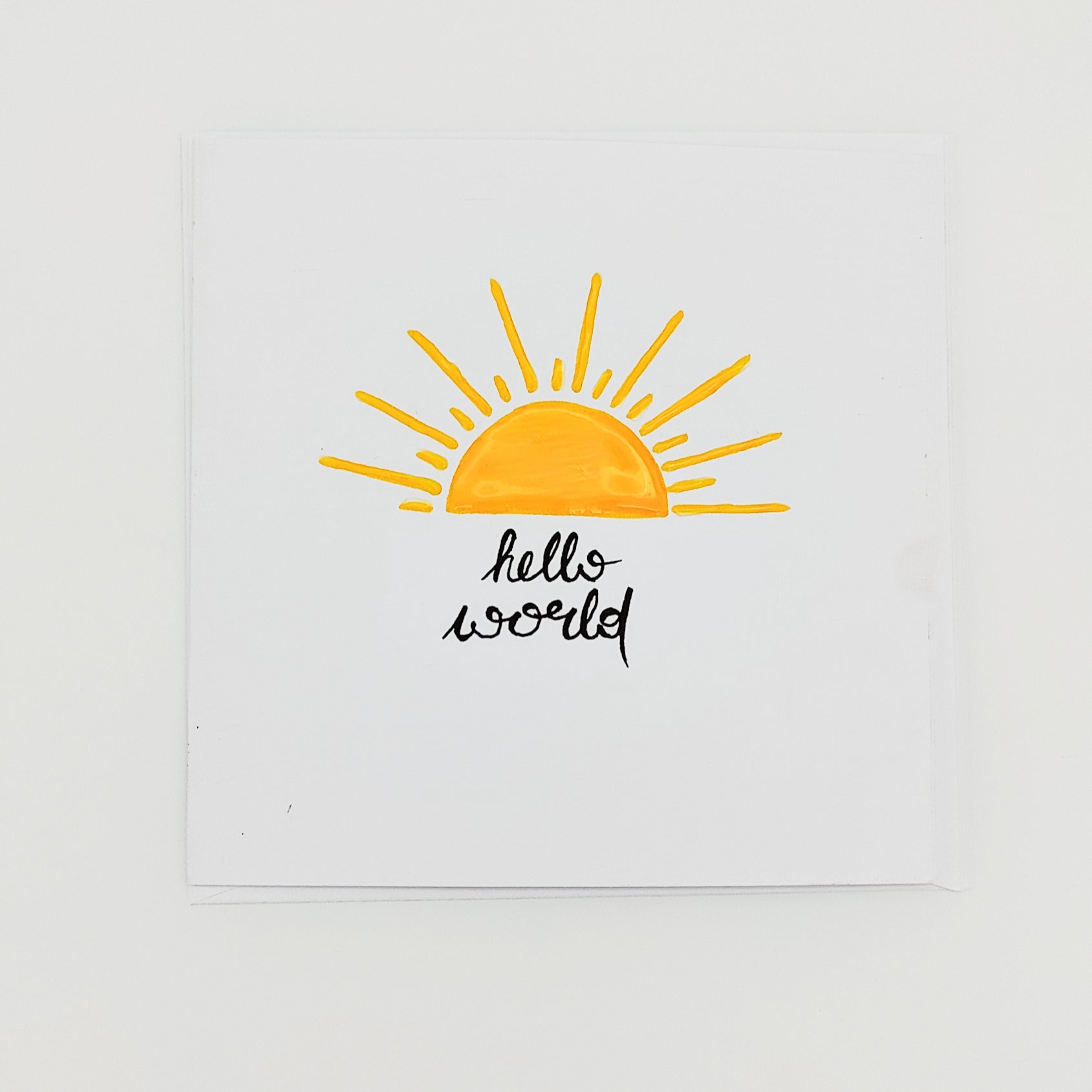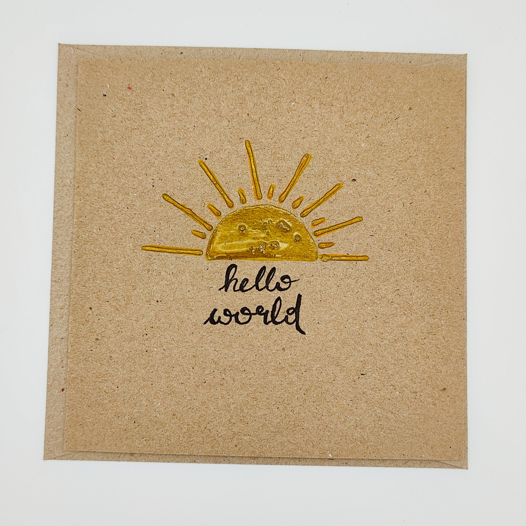 Unsere handgemachte Glückwunschkarte "hello world" ist wie ein Sonnenstrahl zur Begrüßung eines neuen Lebens – perfekt für Geburtsglückwünsche oder einfach, um Willkommen zu sagen.